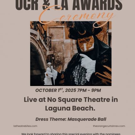 This year we will be having our second ever in person awards at No Square Theatre in Laguna Beach. Thank you to our sponsor, No Square Theatre, for graciously allowing us to put on this year’s awards show on October 1, 2025, from 7 pm to 9 pm. Pop-Cellist Alex T. Sánchez will be performing before and during the awards show. I’ve personally listened to Alex perform live, and you are in for a treat. This year’s theme is Masquerade Ball. Attendees can dress in masquerade fashion. There will be a costume contest this year with a prize, so while costumes are not required, it is a part of the fun! As usual, the event will present awards in multiple categories to theaters large and small in the Los Angeles and Orange County Theater scenes. Please take advantage of this opportunity to connect, network, collaborate, and grow our wonderful creative theater communities.